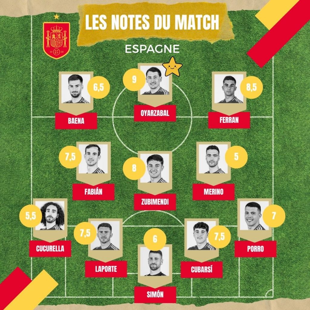 Mikel Oyarzabal 🌟 (9) : Double buteur et passeur, il a rayonné dans son rôle de faux 9.