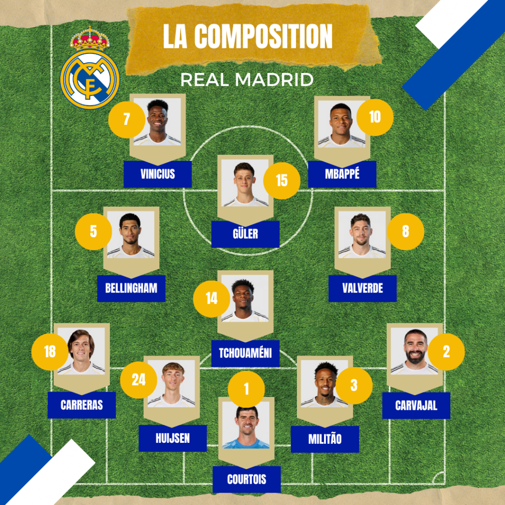 En effet, Xabi Alonso garderait ainsi son socle au milieu de terrain composé d’Aurélien Tchouaméni, Fede Valverde, Jude Bellingham et Arda Güler. La formation naturelle dans ce cas précis serait alors un 4-4-2 avec Vinicius et Mbappé à la pointe de l’attaque. Mais rien n’est acté pour autant dans la mesure où Xabi Alonso est connu pour innover tactiquement et, pour le moment, Mastantuono lui donne une grande satisfaction.